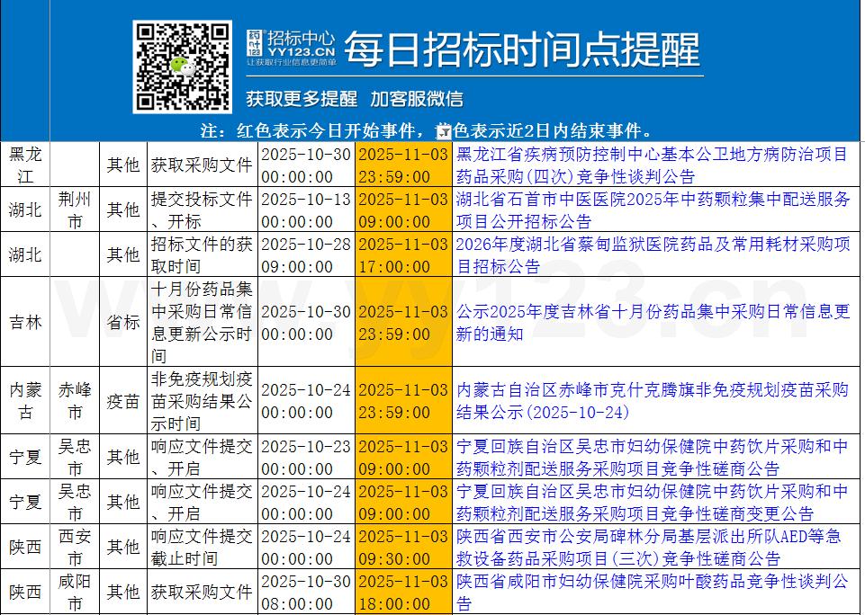 今日政策汇总与招标时间点提醒11月1日-11月3日